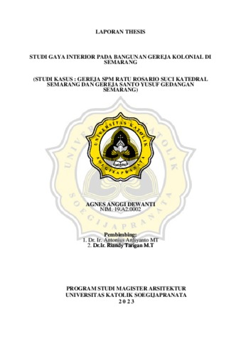 DEWANTI, AGNES ANGGI (2023) STUDI GAYA INTERIOR PADA BANGUNAN GEREJA KOLONIAL DI SEMARANG (STUDI KASUS : GEREJA SPM RATU ROSARIO SUCI KATEDRAL SEMARANG DAN GEREJA SANTO YUSUF GEDANGAN SEMARANG). Masters thesis, Universitas Katholik Soegijapranata Semarang.