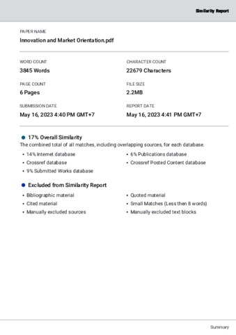 Turnitin_ INNOVATION AND MARKET ORIENTATION: THE EFFECT ON COMPETITIVE ADVANTAGE AND MARKETING PERFORMANCE (A STUDY OF NATURAL-BASED CRAFT INDUSTRY IN SEMARANG REGENCY, CENTRAL JAVA, INDONESIA)