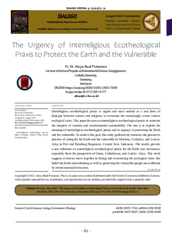 Budi Purnomo, Aloys the urgency of interreligius. DIALOGO.