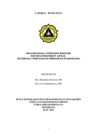 ORGANIZATIONAL CITIZENSHIP BEHAVIOR FOR THE ENVIRONMENT (OCB-E) (STUDI PADA 2 PERUSAHAAN PERBANKAN DI SEMARANG)