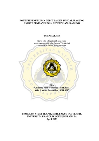 WIBISONO, GUNTORO RIKI and PARANINDYA, AVIN ANANTA (2023) POTENSI PENURUNAN DEBIT BANJIR SUNGAI JRAGUNG AKIBAT PEMBANGUNAN BENDUNGAN JRAGUNG. Other thesis, Universitas Katholik Soegijapranata Semarang.