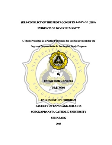 CHRISTELLA, EVELYN RUTH (2023) SELF-CONFLICT OF THE PROTAGONIST IN RAMPAGE (2018) : EVIDENCE OF DAVIS' HUMANITY. Other thesis, Universitas Katolik Soegijapranata Semarang.
