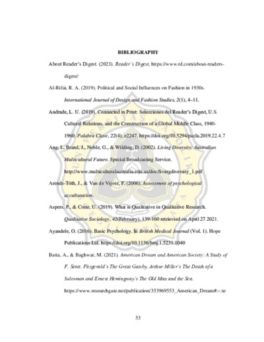 Two Kinds is a short story written by Amy Tan. This short story portrays the life of a girl named Jing Mei who is a second-generation Chinese immigrant that lives in America. Therefore, Jing Mei has two cultural backgrounds, the American culture she got directly from the host society and the Chinese culture she got from the family. Consequently, Jing Mei feels frustrated growing up in Chinese and American cultures that have huge cultural differences. The objective of the study is to find out Jing Mei’s acculturation strategy by examining her cultural orientation. In studying these problems, the writer uses two theories; ethnic indicators by Kennedy and Hall (2006) and acculturation strategy theory by Berry (2006). The four categories that define Jing Mei’s acculturation strategy are separation, integration, marginalized, or assimilation. The result of this study shows that Jing Mei identifies her cultural orientation to American culture by overlooking her culture of origin, Chinese culture. Thus, assimilation is Jing Mei’s category of acculturation strategy.