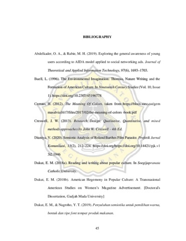 This study analyzed Iklan Nu Green Tea 2016 “Honey Shake 30S through the lens of ecocriticism, which examined how advertisements represented the relationship between humans and the nature. It was an interesting advertisement to be analyzed because it proved how humans and nature could support and give benefits to each other. In analyzing the advertisement, this study employed a qualitative method in doing a content analysis of the advertisement. The theory used in analyzing the ad was second wave ecocriticism, and the method of reading the ad was by use of Roland Barthes semiotics. This study found that 1) Iklan nu green tea 2016 "Honey Shake" 30S made use of AIDA's (Attract, Interest, Desire, and Action) advertisement strategy to become one of the most popular advertisements at the time, and 2) the advertiser used both visual and textual signs throughout the ad to encourage the viewer to care for the environment.