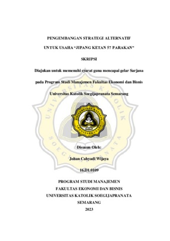 WIJAYA, JOHAN CAHYADI (2023) PENGEMBANGAN STRATEGI ALTERNATIF UNTUK USAHA “JIPANG KETAN 57 PARAKAN”. Other thesis, Universitas Katholik Soegijapranata Semarang.
