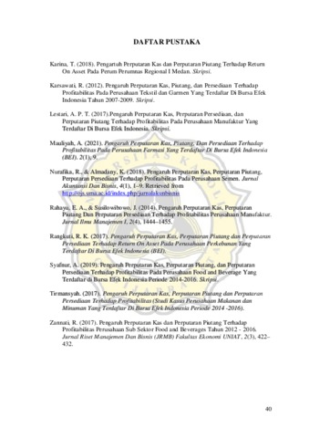 NAINGGOLAN, ANDRELYSIUS LEONARD (2023) PENGARUH PERPUTARAN KAS, PERPUTARAN PIUTANG USAHA, DAN PERPUTARAN PERSEDIAAN TERHADAP RETURN ON ASSET PADA PERUSAHAAN SEKTOR FOOD AND BEVERAGES YANG TERDAFTAR DI BURSA EFEK INDONESIA TAHUN 2019 – 2021. Other thesis, Universitas Katholik Soegijapranata Semarang.