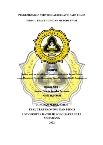 PURNOMO, GRACIA AMADEA (2023) PENGEMBANGAN STRATEGI ALTERNATIF PADA USAHA HIBINIU BEAUTY DENGAN METODE SWOT. Other thesis, Universitas Katholik Soegijapranata Semarang.