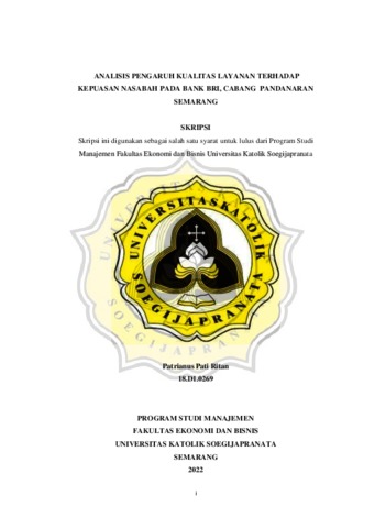 RITAN, PATRIANUS PATI (2023) ANALISIS PENGARUH KUALITAS LAYANAN TERHADAP KEPUASAN NASABAH PADA BANK BRI, CABANG PANDANARAN SEMARANG. Other thesis, Universitas Katholik Soegijapranata Semarang.