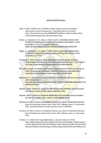 Penggunaan Kredibilitas seseorang dapat diciptakan melalui keakuratan sebuah media akan isi informasi yang ada di dalamnya, menurut Kamus Besar Bahasa Indonesia Kredibilitas adalah, Sebuah perihal yang dapat dipercaya, hal ini dapat berkaitan dengan kata kredibel atau yang dapat dipercaya. Pada istilah kredibilitas ini yaitu, istilah yang berasal dari teori Retorika Aristoteles. Disini Aristoteles mendefinisikan, bahwa retorika sebagai kemampuan untuk mengetahui mengenai sesuatu yang mungkin bersifat meyakinkan di setiap situasi. Pada masa orde baru yang di mulai pada tahun 1966, dicirikan sebagai perkembangan media massa yang mulai banyak dibentuk pada masa orde baru tersebut. Alasanya adalah, karena penggunaan media online pada jaman sekarang ini dinilai memiliki tingkat kredibilitas yang lebih banyak digunakan oleh masyarakat. Situs berita Sigijateng.id merupakan salah satu dari banyaknya media online di Jawa Tengah yang telah terverifikasi oleh Dewan Pers. Peneliti juga telah melakukan riset yang dimana hasil dari riset ini digunakan sebagai data yang valid untuk memilih bagaimana peneliti mengambil data dan menggunakan data tersebut. peneliti melakukan riset pada website Radarsemarang.id ditemukan beberapa kasus banjir di daerah Jawa Tengah pada Februari 2021, sebesar 39 kasus banjir. Pada penelitian ini penulis melakukan penelitian analisis isi pada media Sigijateng.id, guna melakukan proses analisis berita mengenai bagaimana proses media online Sigijateng.id dalam memberitakan informasi pada website Sigijateng.id agar tidak terjadi masalah simpang siur dan diragukan kredibilitasnya. Terutama berita banjir di Jawa Tengah pada bulan Februari 2021. Peneliti menggunakan pendekatan kuantitatif dan analisis isi yaitu guna untuk mengetahui kredibilitas pemberitaan dari bencana banjir di daerah Jawa Tengah pada periode Februari 2021 yang ada pada media online Sigijateng.id. Hasil penelitian menjelaskan bahwa hasil dari 4 unsur yaitu, Accuracy, Believability, Bias, dan Completeness sudah masuk kedalam kategori reliabel karena hasil penelitian sudah menunjukan bahwa angka yang dihasilkan sudah melebihi batas minimal angka kredibel yaitu diatas 7,0 atau 70%. Kata kunci : Kredibilitas Media Sigijateng.id, analisis isi