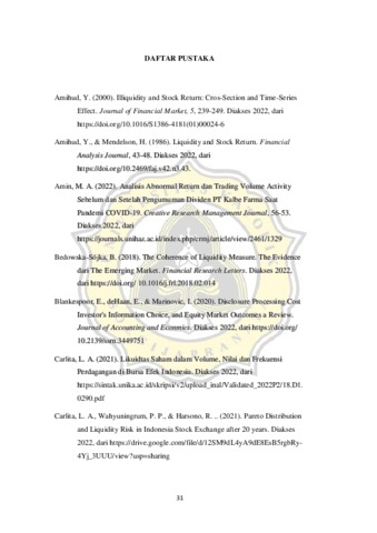 SETIATI, BERNADETA CINTA (2023) Analisis Persistensi Likuiditas Pasar dari Saham-Saham di Bursa Efek Indonesia periode 2019-2021. Other thesis, Universitas Katholik Soegijapranata Semarang.