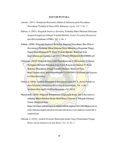 KUSNANDAR, KARTIKA SARI (2023) PENGARUH EMPLOYER BRANDING DAN E-RECRUITMENT TERHADAP MINAT MELAMAR PEKERJAAN MAHASISWA ANGKATAN 2019 PROGRAM STUDI MANAJEMEN UNIVERSITAS KATOLIK SOEGIJAPRANATA. Other thesis, Universitas Katholik Soegijapranata Semarang.