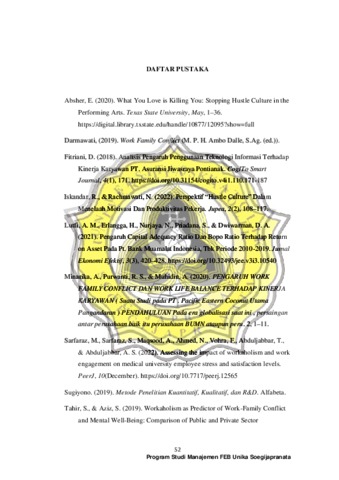 DINAR, HANINDITYA (2023) PENGARUH PERILAKU HUSTLE CULTURE TERHADAP WORK-FAMILY CONFLICT PADA KARYAWAN DEPARTEMEN MARKETING COMMUNICATION SUARA MERDEKA NETWORK. Other thesis, Universitas Katholik Soegijapranata Semarang.