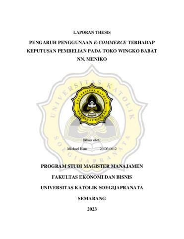 HANS, MICHAEL (2023) PENGARUH PENGGUNAAN E-COMMERCE TERHADAP KEPUTUSAN PEMBELIAN PADA TOKO WINGKO BABAT NN. MENIKO. Masters thesis, Universitas Katholik Soegijapranata Semarang.