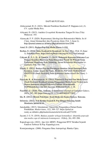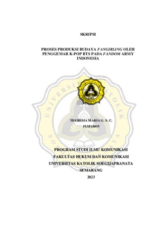 MARIA G. S. C., THERESIA (2023) PROSES PRODUKSI BUDAYA FANGIRLING OLEH PENGGEMAR K-POP BTS PADA FANDOM ARMY INDONESIA. Other thesis, Universitas Katolik Soegijapranata Semarang.