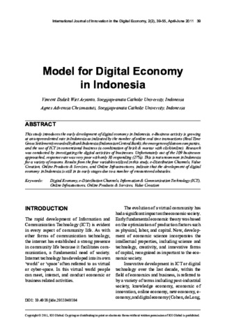 Aryanto, Vincent Didiek Wiet and CHRISMASTUTI, AGNES ADVENSIA Model for Digital Economy in Indonesia. International Journal of Innovation in the Digital Economy (IJIDE).