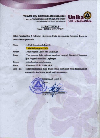 LAKO, ANDREAS and Adhyanggono, G.M. Buku pedoman penulisan proposal, disertasi, dan pelaksanaan ujian. Soegijapranata Catholic University. ISBN 978-602-6865-96-0