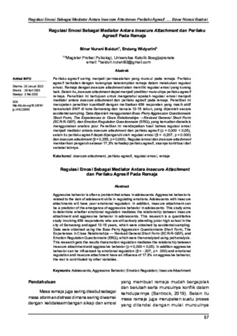Widyorini, Endang and Baiduri, Binar Nurani (2023) Regulasi Emosi Sebagai Mediator Antara Insecure Attachment dan Perilaku Agresif Pada Remaja. Jurnal Psikologi, 19 (1). ISSN 24078786