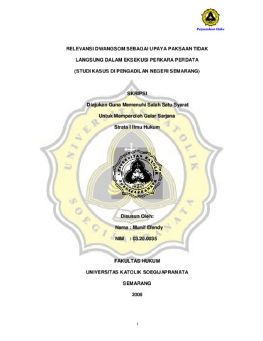 Efendy, Munif (2008) RELEVANSI DWANGSOM SEBAGAI UPAYA PAKSAAN TIDAK LANGSUNG DALAM EKSEKUSI PERKARA PERDATA (STUDI KASUS DI PENGADILAN NEGERI SEMARANG. Other thesis, PRODI HUKUM UNIKA SOEGIJAPRANATA.