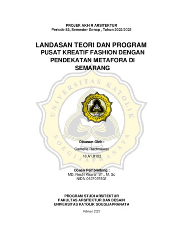 RACHMAWATI, CAMELLIA (2023) PUSAT KREATIF FASHION DENGAN PENDEKATAN METAFORA DI SEMARANG. Other thesis, Universitas Katholik Soegijapranata Semarang.