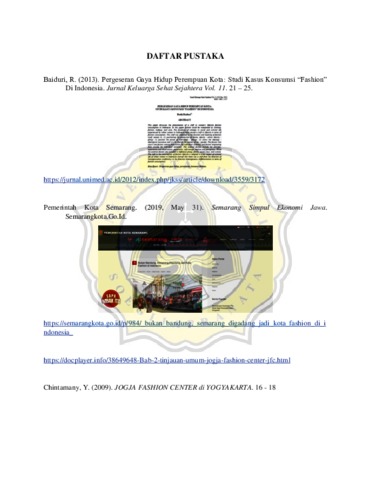 Fashion dapat diidetikan dengan paiakan atau busana yang melekat pada tubuh dengan maksut untuk melindungi ataupun memperindah penampilan pada tubuh. Pakaian atau busana pada umumnya merupakan sebuah ekpresi atau ungkapan pribadi yang tidak selalu sama pada setiap orang. Fashion hadir dalam berbagai aktivitas manusia: politis, religius, saintifik, artistik, dan lain sebagainya, sebagai sebuah identitas atau karakteristik mendasar setiap individu yang merefleksikan keunikan nilai yang dimiliki setiap orang, (shinta, 2018). Dengan berkembangnya komunikasi dan media informasi membawa sejumlah pergeseran dalam konsumsi fashion. Pergeseran itu antara lain nampak dalam memposisikan produksi hasrat, jati diri/identitas etnis/kelompok. Sebagaimana fashion ‟batik‟ yang dianggap sebagai salah satu kearifan lokal/logal genius bangsa Indoneisa yang sekarang telah diakui badan dunia UNESCO sebagai hasil karya Indonesia. dapat dikatan bahwa pergeseran fesyen di Indonesia dapat melupakan dan menutup identitas fesyen dan produk local Indonesia. (Baiduri, 2013) Dalam perkembangan zaman yang sangat pesat, munculnya berbagai ide, pengembangan serta inovasi yang lebih kreatif sehingga dapat membantu memenuhi kebutuhan manusia saat in. Tingkat kebutuhan masyarakat pun semakin meningkat, diperlukan suatu pemuas kebutuhan yang bersifat kreatif dimana dapat mengalami perubahan terus menerus serta adaptasi berdasarkan kebutuhan masyarakan modern. Maka dari itu perlu adanya sebuah wadah untuk menampung pelaku pelaku kreatif agar dapat menyalurkan bakat dalam mengembangkan dan menghasilkan sesuatu yang menarik dari sebuah produk. Dalam konteks inilah kita patut mempertimbangkan model pembangunan perkotaan yang dikenal sebagai Kota Kreatif, dengan menyediakan tempat dan pengalaman yang memuaskan secara emosional bagi mereka. Maka dari itu sebuah Pusat Kreatifitas dengan menerapkan unsur Fashion local Indonesia yang berada pada lingkungan Kota Semarang diangkat menjadi sebuah karya arsitektur dengan pendekatan metafora sebagai penunjuk identitas Fashion pada bangunan sebagai potensi untuk menghasilkan sebuah karya dan penuas kebutuhan yang dapat memenuhi kebutuhan masyarakat Kota Semarang.