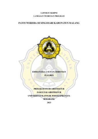 CHRISTIAN, EMMANUELLA SUTAN (2023) PANTI WERDHA DI SINGOSARI KABUPATEN MALANG. Other thesis, Universitas Katholik Soegijapranata Semarang.