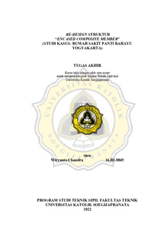 CHANDRA, WIRYANTO (2023) RE-DESIGN STRUKTUR “ENCASED COMPOSITE MEMBER” (STUDI KASUS: RUMAH SAKIT PANTI RAHAYU YOGYAKARTA). Other thesis, Universitas Katholik Soegijapranata Semarang.