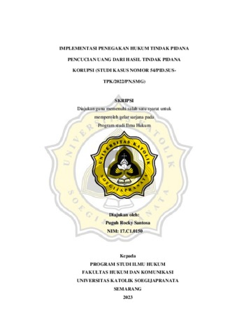 SANTOSA, PUGUH ROCKY (2023) IMPLEMENTASI PENEGAKAN HUKUM TINDAK PIDANA PENCUCIAN UANG DARI HASIL TINDAK PIDANA KORUPSI (STUDI KASUS NOMOR 54/PID.SUS- TPK/2022/PN.SMG). Other thesis, Universitas Katholik Soegijapranata Semarang.