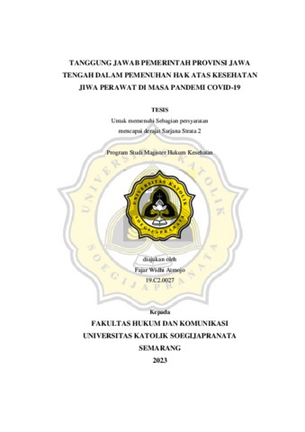 ATMOJO, FAJAR WIDHI (2023) TANGGUNG JAWAB PEMERINTAH PROVINSI JAWA TENGAH DALAM PEMENUHAN HAK ATAS KESEHATAN JIWA PERAWAT DI MASA PANDEMI COVID-19. Masters thesis, Universitas Katholik Soegijapranata Semarang.