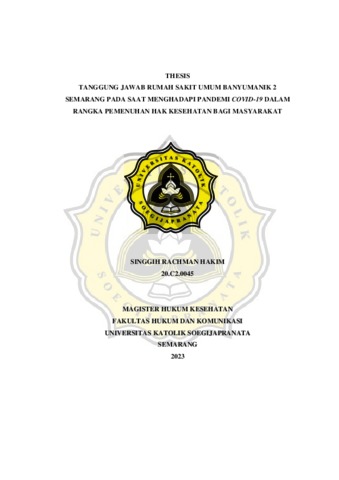 HAKIM, SINGGIH RACHMAN (2023) TANGGUNG JAWAB RUMAH SAKIT UMUM BANYUMANIK 2 SEMARANG PADA SAAT MENGHADAPI PANDEMI COVID-19 DALAM RANGKA PEMENUHAN HAK KESEHATAN BAGI MASYARAKAT. Masters thesis, Universitas Katholik Soegijapranata Semarang.
