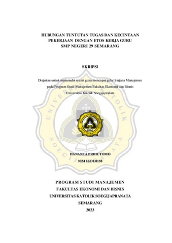 PRIHUTOMO, HANANTA (2023) HUBUNGAN TUNTUTAN TUGAS DAN KECINTAAN PEKERJAAN DENGAN ETOS KERJA GURU SMP NEGERI 29 SEMARANG. Other thesis, Universitas Katholik Soegijapranata Semarang.