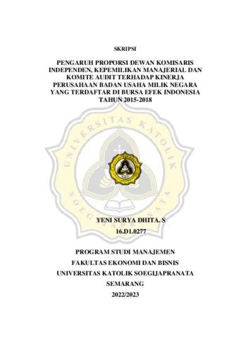 DHITA. S, YENI SURYA (2023) PENGARUH PROPORSI DEWAN KOMISARIS INDEPENDEN, KEPEMILIKAN MANAJERIAL DAN KOMITE AUDIT TERHADAP KINERJA PERUSAHAAN BADAN USAHA MILIK NEGARA YANG TERDAFTAR DI BURSA EFEK INDONESIA TAHUN 2015-2018. Other thesis, Universitas Katholik Soegijapranata Semarang.
