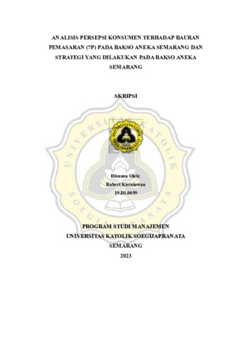KURNIAWAN, ROBERT (2023) ANALISIS PERSEPSI KONSUMEN TERHADAP BAURAN PEMASARAN (7P) PADA BAKSO ANEKA SEMARANG DAN STRATEGI YANG DILAKUKAN PADA BAKSO ANEKA SEMARANG. Other thesis, Universitas Katholik Soegijapranata Semarang.