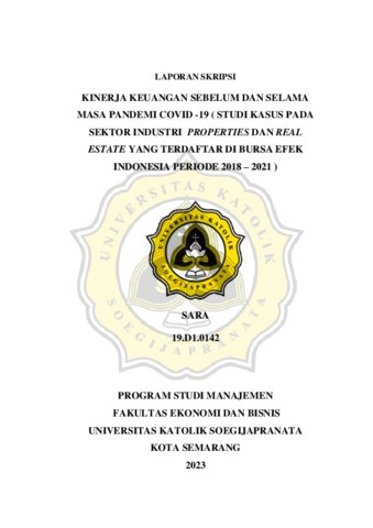 SARA, SARA (2023) KINERJA KEUANGAN SEBELUM DAN SELAMA MASA PANDEMI COVID -19 ( STUDI KASUS PADA SEKTOR INDUSTRI PROPERTIES DAN REAL ESTATE YANG TERDAFTAR DI BURSA EFEK INDONESIA PERIODE 2018 – 2021 ). Other thesis, Universitas Katholik Soegijapranata Semarang.