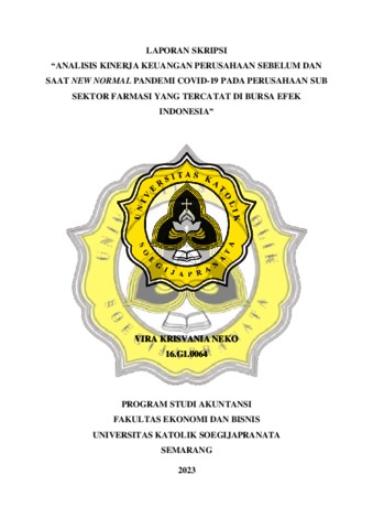 NEKO, VIRA KRISVANIA (2023) ANALISIS KINERJA KEUANGAN PERUSAHAAN SEBELUM DAN SAAT NEW NORMAL PANDEMI COVID-19 PADA PERUSAHAAN SUB SEKTOR FARMASI YANG TERCATAT DI BURSA EFEK INDONESIA. Other thesis, Universitas Katholik Soegijapranata Semarang.