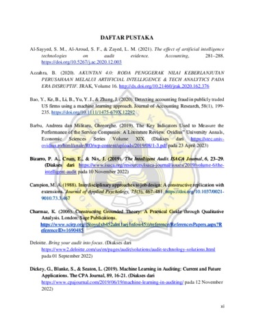 Artificial Intelligence telah sering diperbincangkan dalam manfaatnya diberbagai sektor, tak terkecuali pada bidang akuntansi dan audit. Terlebih pada saat pandemi COVID-19 para firma akuntansi terbesar didunia yaitu Big Four saling berlomba untuk mengembangkan memaksimalkan penggunaan teknologi dalam membantu para auditor untuk menjalankan tugasnya walaupun dalam kondisi pandemi. Firma akuntansi Big Four telah menerapkan teknologi Artificilal Intelligence di berbagai negara tidak terkecuali Indonesia. Oleh karena itu penelitian ini bertujuan untuk mendeskripsikan perspektif para auditor mengenai penggunaan teknologi Artificial Intelligence dalam membantu pekerjaan mereka. Objek dalam penelitian ini adalah auditor di KAP Big Four yang pernah atau sedang menggunakan teknologi Artificial Intelligence dalan melakukan pekerjaannya. Pengumpulan data dilakukan dengan menggunakan teknik wawancara kepada para narasumber. Teknik analisis data yang digunakan adalah teknik analisis Miles and Huberman (1984). Hasil penelitian menunjukan bahwa teknologi Artificial Intelligence yang digunakan untuk kegiatan audit rutin yaitu sampling audit, membantu dalam mengurangi waktu pengerjaan sebanyak 50-70% pekerjaan rutin (repetitif), meminimalisir terjadinya tingkat human error pada pekerjaan audit yang kompleks, meningkatkan efisiensi kerja auditor agar auditor dapat berfokus untuk memberikan judgment, dan melakukan pekerjaan yang lebih penting, dan membantu dalam mengambil dan menyimpan informasi