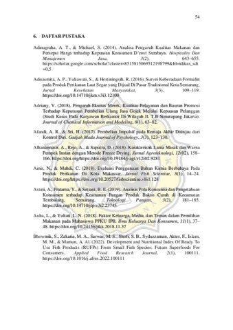 Pempek merupakan produk olahan makanan berasal dari kota Palembang, Sumatra Selatan dengan ciri khas menggunakan bahan dasar ikan gabus atau ikan tengiri. Ikan adalah sumber tinggi protein hewani. Pempek menjadi makanan yang populer tidak hanya di kota Palembang namun di berbagai daerah karena memiliki cita rasa yang khas. Pempek akan semakin enak jika dimakan bersama kuah cuko yang terbuat dari rebusan air gula merah, cabai rawit dan cuka. Cara pembuatan pempek yaitu daging ikan yang sudah digiling kemudian dicampur dengan tepung tapioka atau tepung sagu, air, garam dan bumbu-bumbu lainnya, lalu diuleni setelah itu direbus. Namun pada dasarnya ikan jenis apa saja dapat digunakan menjadi bahan pembuatan pempek. Pempek yang sudah direbus memiliki kadar air mencapai 50-60% sehingga daya tahan simpannya relatif singkat. Penyalahgunaan bahan berbahaya khususnya boraks dan formalin sebagai bahan pengawet makanan menjadi fokus penelitian penulis sehingga penelitian ini bertujuan untuk mengetahui pengetahuan mahasiswa aktif Universitas Katolik Soegijapranata angkatan 2017-2020 terhadap produk pempek yang mengandung boraks dan formalin. Penambahan bahan pengawet bertujuan untuk menghambat pertumbuhan mikroba pembusuk pada pangan, baik bersifat patogen maupun non-patogen, memperpanjang umur simpan, menghambat penurunan nilai gizi, warna, tekstur, dan flavor pada produk makanan. Boraks dan formalin adalah zat kimia berbahaya jika dikonsumsi dan dilarang untuk ditambahkan pada produk makanan. Dampak penyakit yang ditimbulkan yaitu dapat memicu kanker, iritasi, dan alergi. Studi penelitian ini menggunakan metode survei Purposed Sampling. Survei pendahuluan dilakukan oleh 40 responden mahasiswa dan kemudian dilanjutkan oleh 400 mahasiswa Universitas Katolik Soegijapranata Semarang dengan menyebarkan melalui google form sebagai media untuk menampung semua jawaban dari responden. Mahasiswa merupakan salah satu kelompok usia remaja yang mulai lepas dari orang tua dan mulai memikirkan kandungan makanan yang dikonsumsuinya. Hasil survei didapatkan 92,6% responden mengkonsumsi pempek hanya 1 kali dalam seminggu. Sebanyak 35,54% responden menyukai pempek kapal selam. Terdapat 98,4% responden memilih benar bahwa boraks dan formalin merupakan pengawet yang dilarang untuk produk makanan dan 99,5% responden memilih benar bahwa makanan yang mengandung boraks dan formalin memiliki dampak buruk pada kesehatan.