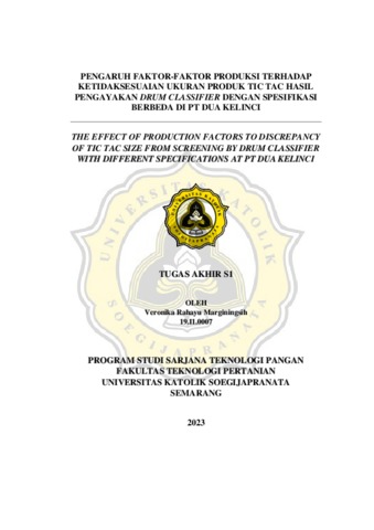 PENGARUH FAKTOR-FAKTOR PRODUKSI TERHADAP KETIDAKSESUAIAN UKURAN PRODUK TIC TAC HASIL PENGAYAKAN DRUM CLASSIFIER DENGAN SPESIFIKASI BERBEDA DI PT DUA KELINCI