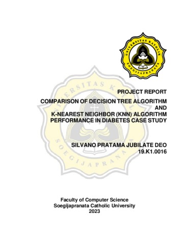 DEO, SILVANO PRATAMA JUBILATE (2023) COMPARISON OF DECISION TREE ALGORITHM AND K-NEAREST NEIGHBOR (KNN) ALGORITHM PERFORMANCE IN DIABETES CASE STUDY. Other thesis, UNIVERSITAS KHATOLIK SOEGIJAPRANATA.