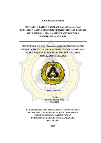 PANG, HELENNA SUSANTI (2023) PENGARUH BAHAN SANITASI PAA (Peracetic Acid) TERHADAP KARAKTERISTIK FISIKOKIMIA AIR LIMBAH SIRUP HERBAL SKALA MINIPLANT DI UNIKA SOEGIJAPRANATA BSB. Other thesis, Universitas Katholik Soegijapranata Semarang.