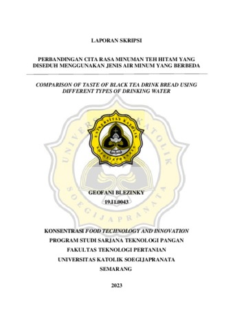 BLEZINKY, GEOFANI (2023) PERBANDINGAN CITA RASA MINUMAN TEH HITAM YANG DISEDUH MENGGUNAKAN JENIS AIR MINUM YANG BERBEDA. Other thesis, Universitas Katholik Soegijapranata Semarang.