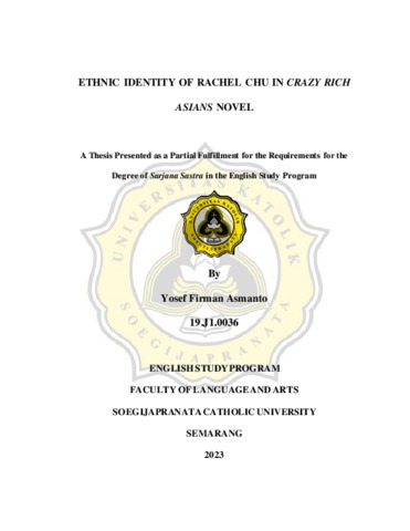 ASMANTO, YOSEF FIRMAN (2023) ETHNIC IDENTITY OF RACHEL CHU IN CRAZY RICH ASIANS NOVEL. Other thesis, Universitas Katholik Soegijapranata Semarang.