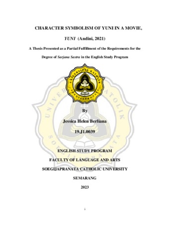BERLIANA, JESSICA HELEN (2023) CHARACTER SYMBOLISM OF YUNI IN A MOVIE, YUNI (Andini, 2021). Other thesis, Universitas Katholik Soegijapranata Semarang.