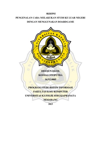 DWIPUTRA, KOSMAS (2023) PENGENALAN CARA MELAKUKAN STUDI KE LUAR NEGERI DENGAN MENGGUNAKAN BOARDGAME. Other thesis, UNIVERSITAS KHATOLIK SOEGIJAPRANATA.