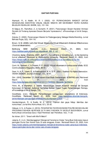 Batik adalah salah budaya asli Indonesia yang telah di wariskan secara turun-temurun, bahkan keindahan batik juga telah di akui oleh berbagai negara luar. Di setiap daerah di Indonesia memiliki batik, dan salah satunya adalah batik Semarang yang kepopulerannya masih kalah dengan batik di daerah lain yang ada di Jawa Tengah. Disisi lain, perkembangan zaman modern sekarang membuat banyak remaja menganggap bahwa batik itu kuno, tradisional, dan mahal. Hal tersebut membuat banyak remaja lebih tertarik menggunakan dan membeli pakaian modern kekinian yang berasal dari budaya luar. Padahal batik Semarang adalah salah satu warisan dan kekayaan bangsa yang perlu untuk dihargai, serta dilestarikan agar dapat diwariskan kepada generasi selanjutnya. Oleh karena itu, perancangan virtual influencer ini bertujuan untuk mengenalkan dan mempopulerkan batik Semarang kepada anak remaja. Selain itu, juga untuk menunjukan bahwa batik bukanlah fashion yang kuno dan tradisional lagi. Melainkan fashion warisan budaya yang dapat dipadukan dengan fashion budaya kekinian dan modern.
