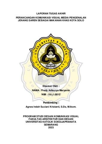 MARYANTO, FREDY ADISURYA (2023) PERANCANGAN KOMUNIKASI VISUAL MEDIA PENGENALAN JENANG SAREN SEBAGAI MAKANAN KHAS KOTA SOLO. Other thesis, Universitas Katholik Soegijapranata Semarang.