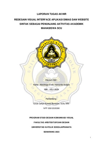 SUTJIPTO, ABEDNEGO ENDRU HERNANDO (2023) REDESAIN VISUAL INTERFACE APLIKASI DIMAS DAN WEBSITE SINTAK SEBAGAI PENUNJANG AKTIVITAS AKADEMIK MAHASISWA SCU. Other thesis, Universitas Katholik Soegijapranata Semarang.
