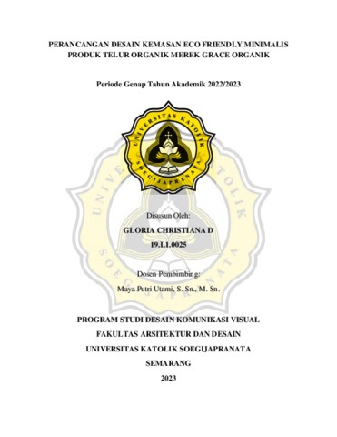 CHRISTIANA D, GLORIA (2023) PERANCANGAN DESAIN KEMASAN ECO FRIENDLY MINIMALIS PRODUK TELUR ORGANIK MEREK GRACE ORGANIK. Other thesis, Universitas Katholik Soegijapranata Semarang.