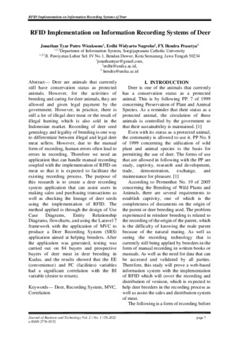 Wicaksono, Jonathan Tyar Putro and Nugroho, Erdhi Widyarto and Prasetya, FX Hendra (2022) RFID Implementation on Information Recording Systems of Deer. journal of busines and technology, 2 (1). pp. 7-15. ISSN e-ISSN: 2776-0332