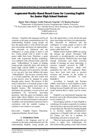 Maslan, Handy Putra and Nugroho, Erdhi Widyarto and Prasetya, FX Hendra (2022) Augmented Reality-Based Board Game for Learning English for Junior High School Students. journal of busines and technology, 2 (2). pp. 50-56. ISSN e-ISSN: 2776-0332