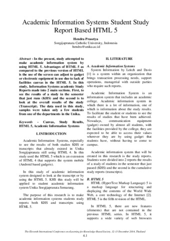 In the present, study attempted to make academic information system by using HTML 5. Advantages of HTML 5 as compared to the previous version of HTML is the use of the screen can adjust to gadget or electronic equipment in use due to lack of facilities canvas in the HTML 5. In this study, Information Systems academic Study Reports made into 2 main sections. First, to see the results of a study in the semester that just runs (KHS) and the second is to look at the overall results of the study (Transcript). The data used in this study, samples were taken only a few students from one of the departments in the Unika.